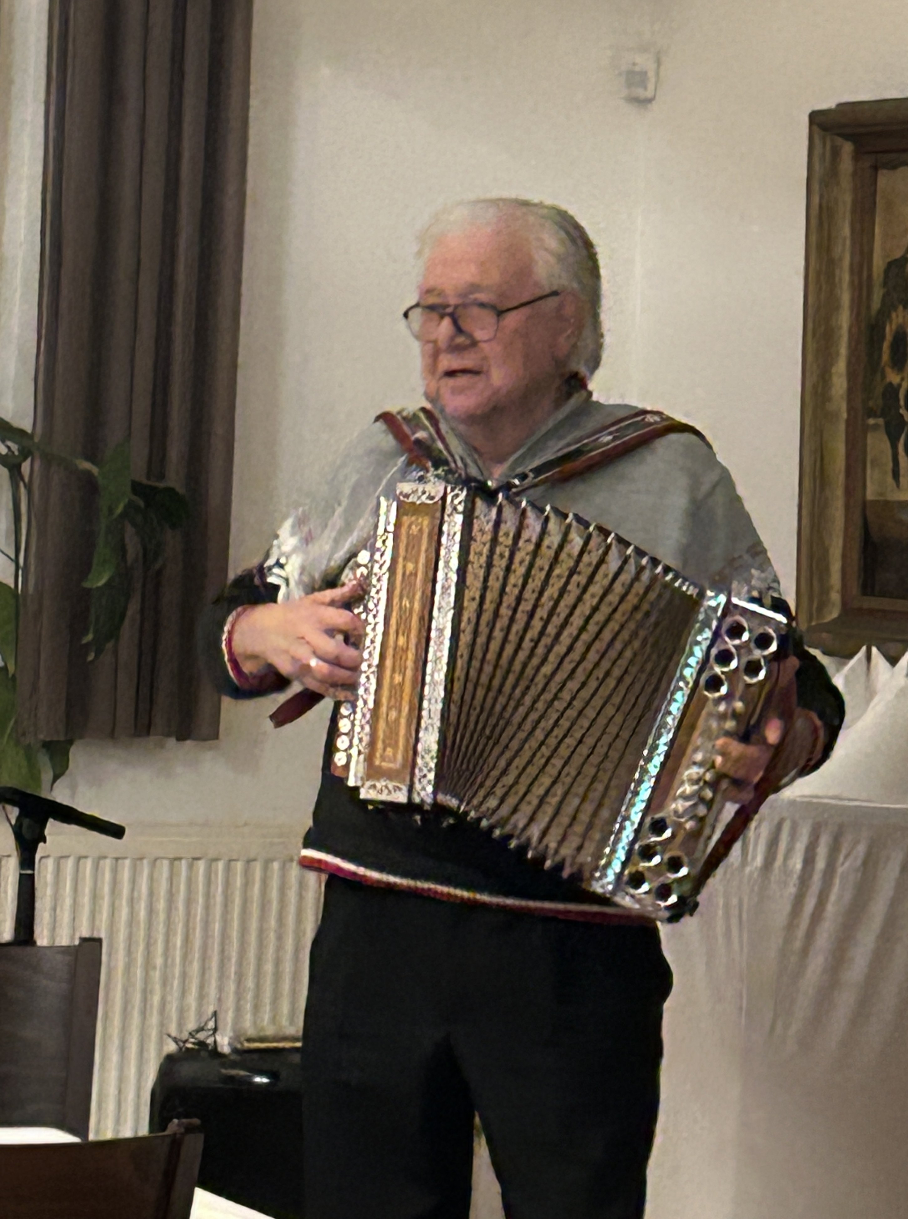 Auch für ein wenig gemeinsamen Gesang sorgt unser Haus- und Hofmusiker Wolfgang Braser noch mit seinem Akordeon.