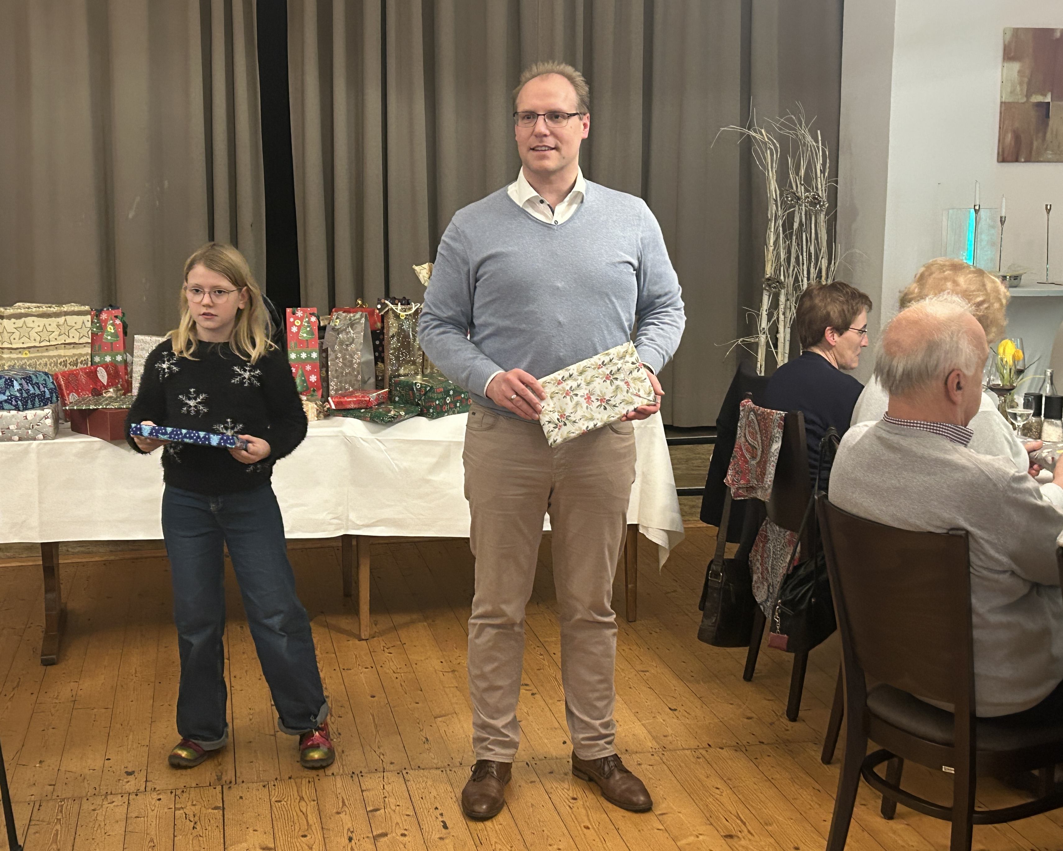 Höhepunkt des Abends ist dann die Verlosung der Tombolapreise durch die Glücksfeen Elena und Michael.