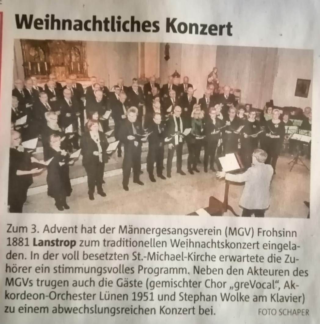 Für das vom MGV durchgeführte weihnachtlichen Konzert in der St.-Michael-Kirche am 4. Advent 2015 wurden 1,00 Euro je Besucher für diesen Zweck eingenommen. Zusätzliche Spenden durch die Besucher, sowie eine weitere Aufstockung auf den runden Betrag durch den MGV, ergaben dann diese schöne Summe.