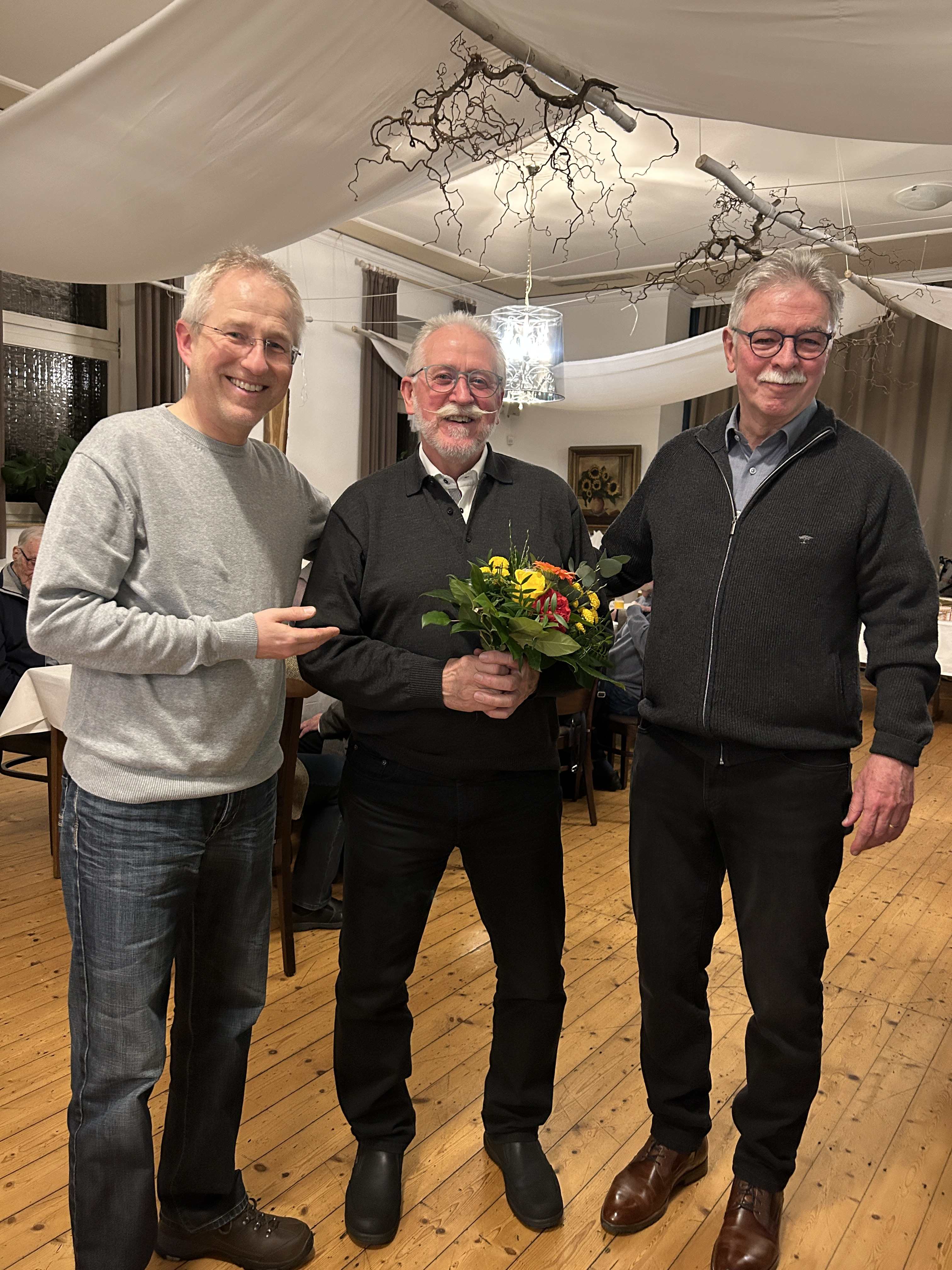 Nach der Begrüßung durch den 1. Vorsitzenden Klaus Westermann wird, zur Überraschung des Betroffenen, der 1. Kassierer Reinhard Höftmann für 30-jährige Kassierertätigkeit vom 1.Vors. Klaus Westermann und dem 2. Vors. Peter Hoffmann, geehrt.