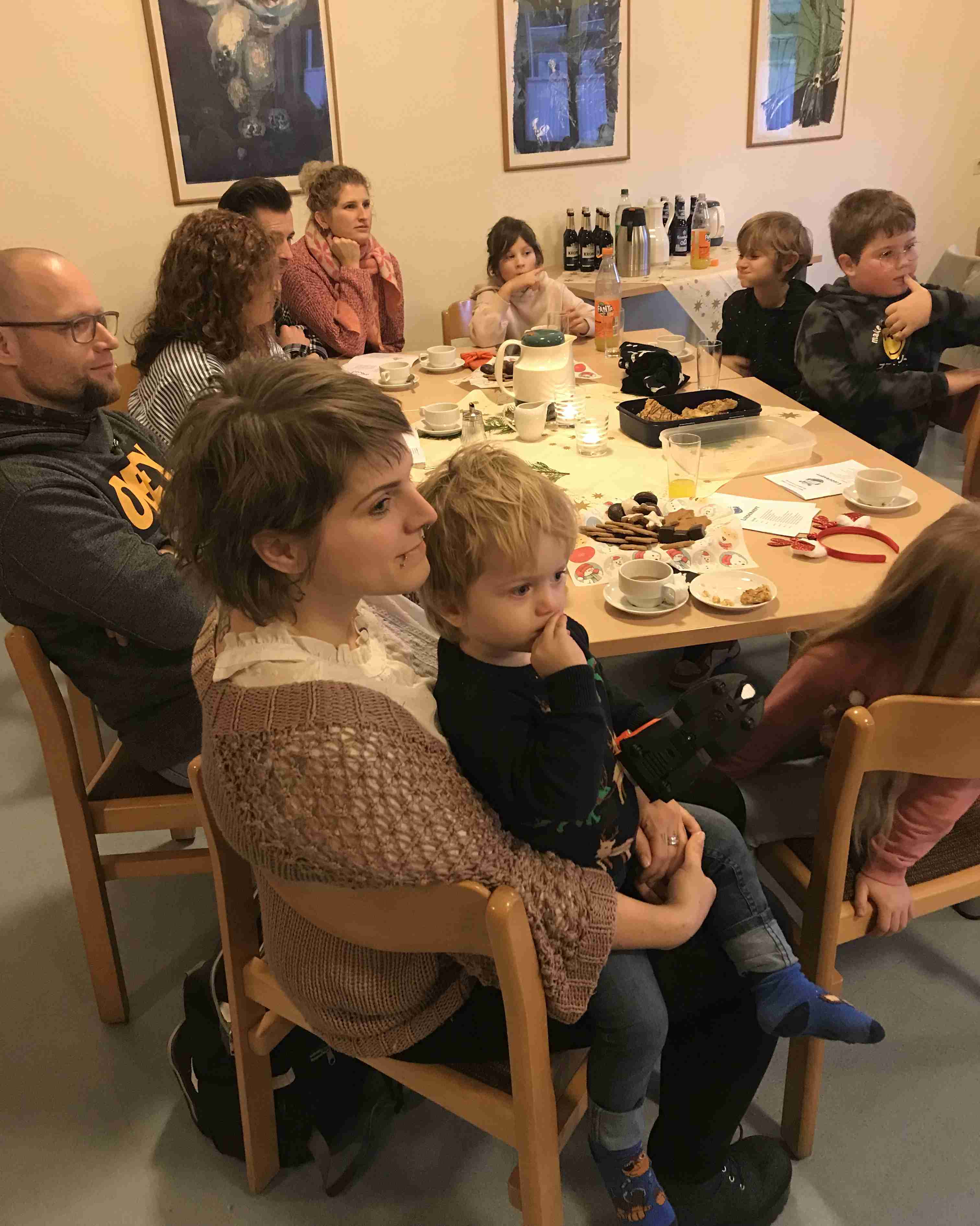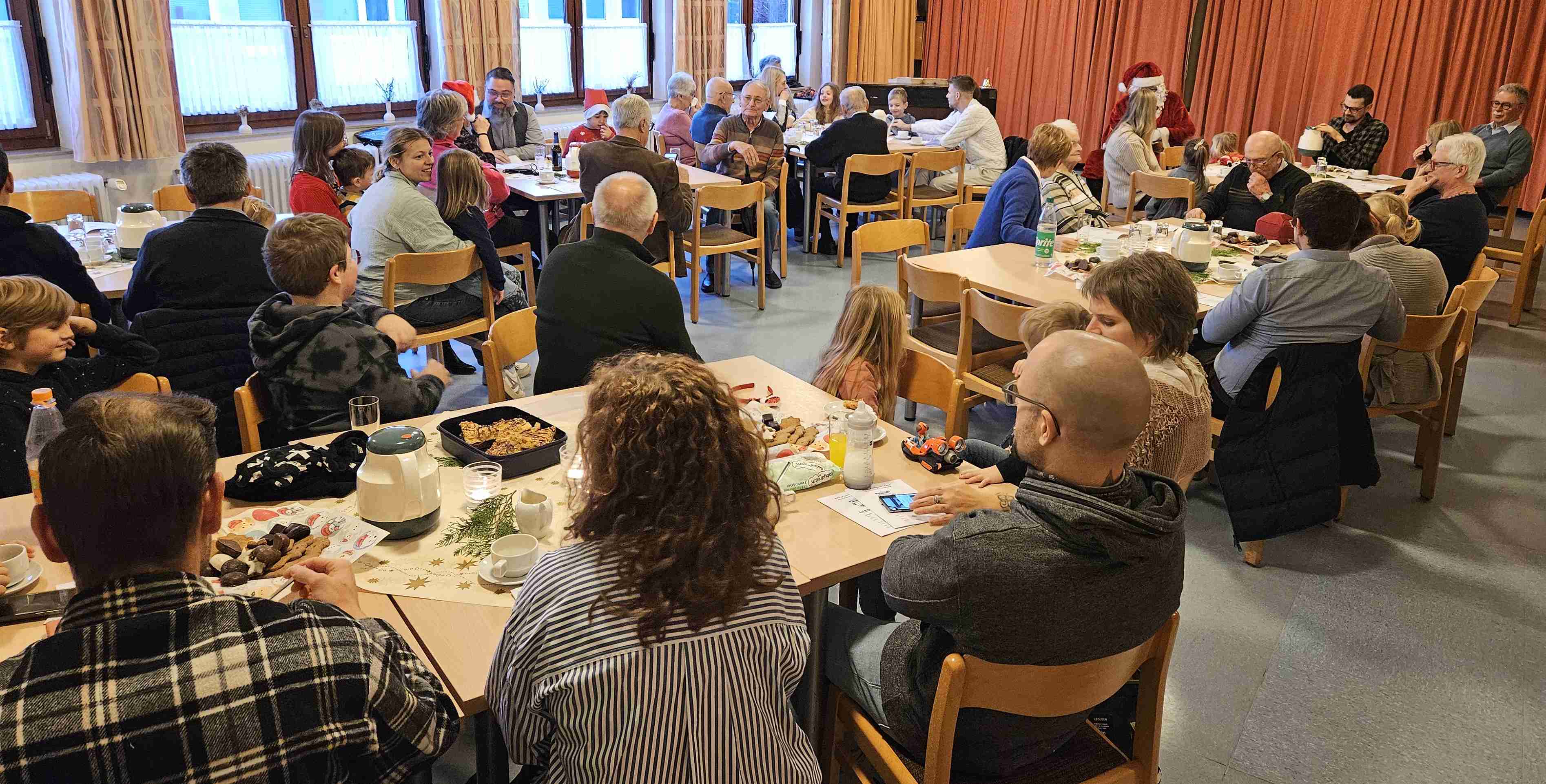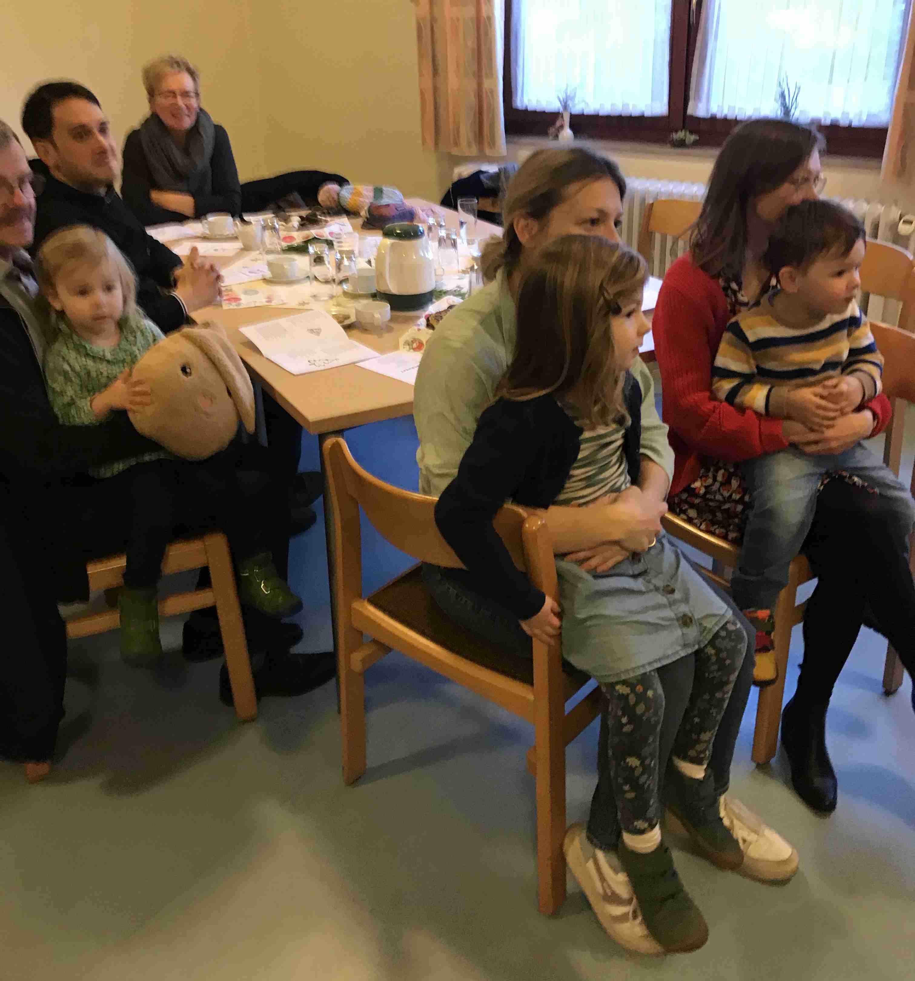 In froher Erwartung haben sich die Kinder mit Eltern, Großeltern oder Urgroßeltern im kath. Pfarrheim zusammen gefunden.