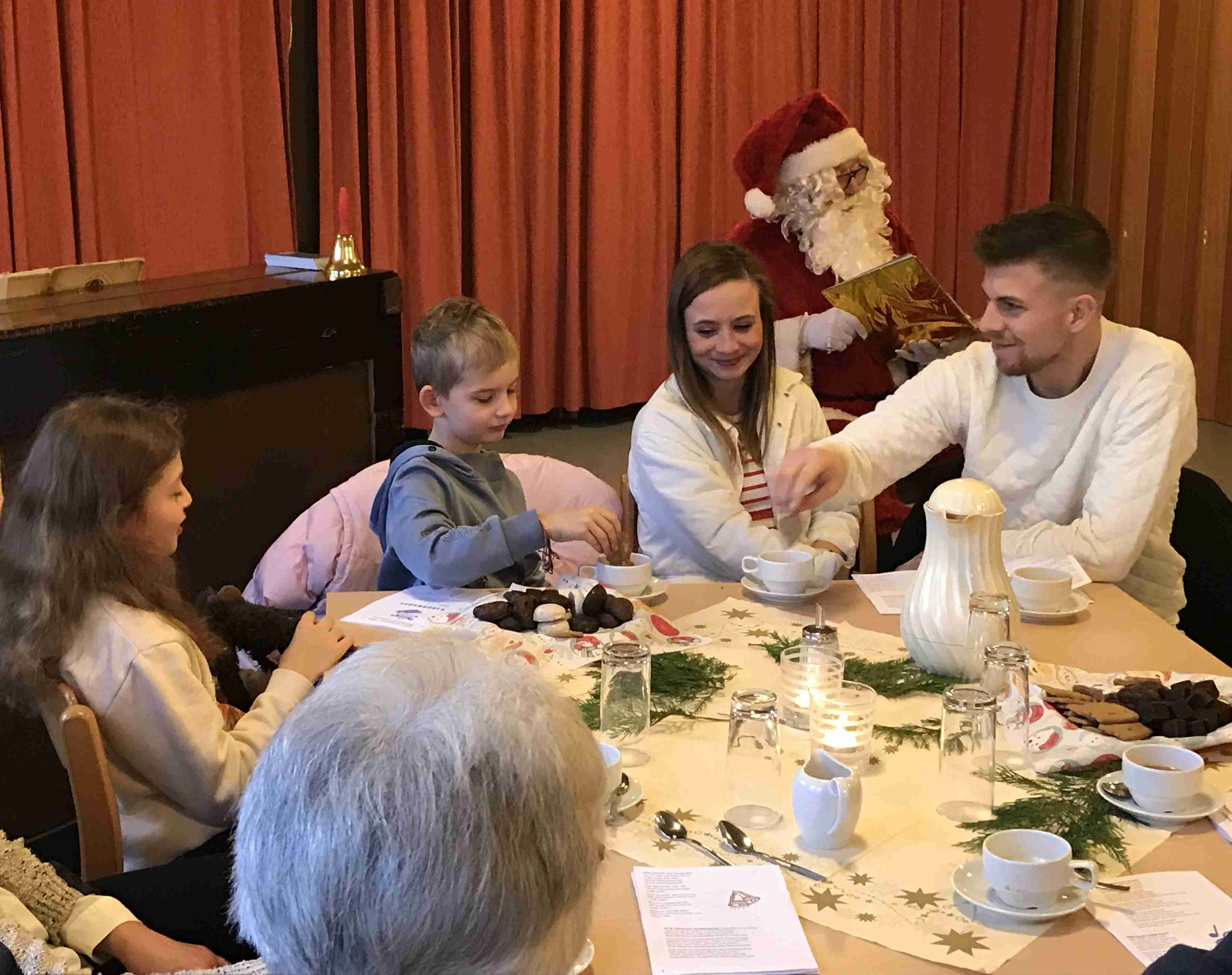 Nachdem alle Kinder beim Weihnachtsmann gewesen sind, muss dieser auch schon wieder weiter und wir bedanken uns bei ihm.